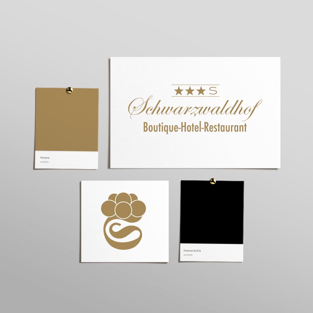 Heute steht Gold im Zentrum des Corporate Designs. Eine Farbe, die Eleganz, Wertigkeit und die besondere Atmosphäre des Boutiquehotels transportiert. Es verleiht der Marke eine zeitlose Ausstrahlung und unterstreicht den Anspruch an Qualität und Exklusivität. Die Farbwelt des Schwarzwaldhofs ist kein Zufallsprodukt, sondern das Ergebnis einer langjährigen Zusammenarbeit. Schritt für Schritt haben wir das Corporate Design verfeinert, modernisiert und an die wachsende Identität des Hauses angepasst.