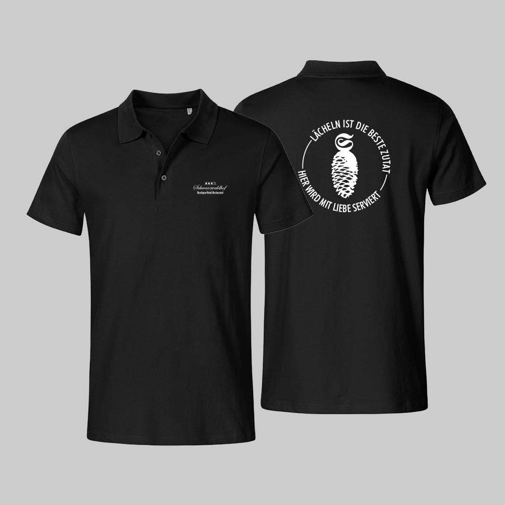 Für das Boutiquehotel Schwarzwaldhof haben wir eine komplette Kollektion an Arbeitskleidung entwickelt, die Funktionalität, Komfort und Markencharakter verbindet. Jedes Textil wurde individuell gestaltet, produziert und mit einem eigenen, passenden Slogan versehen. So entsteht ein einheitlicher Auftritt, der das Team stärkt und die Markenidentität des Hauses sichtbar macht.